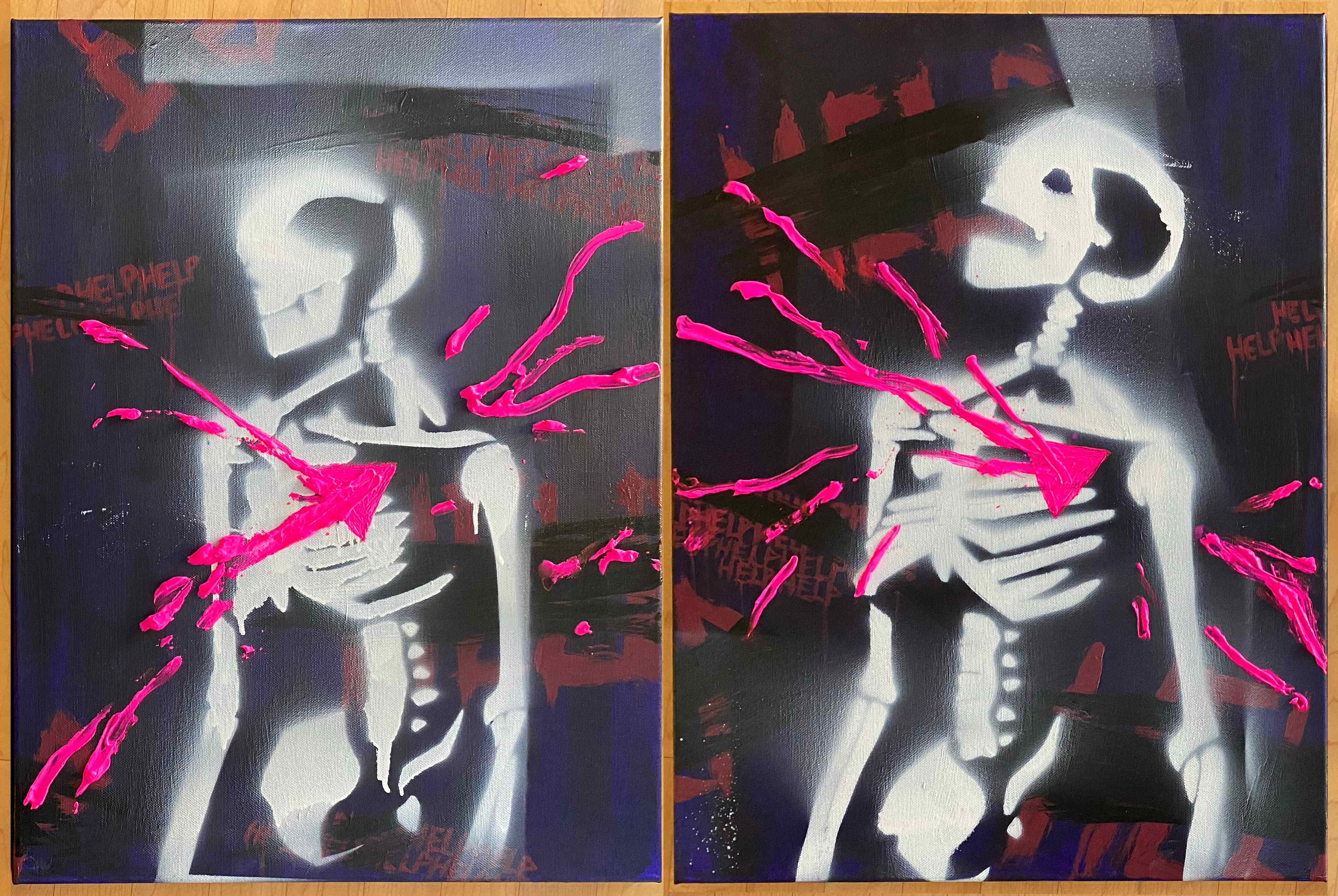 Acrylic and spray paint on canvas. A painting inspired by the Act Up movement.